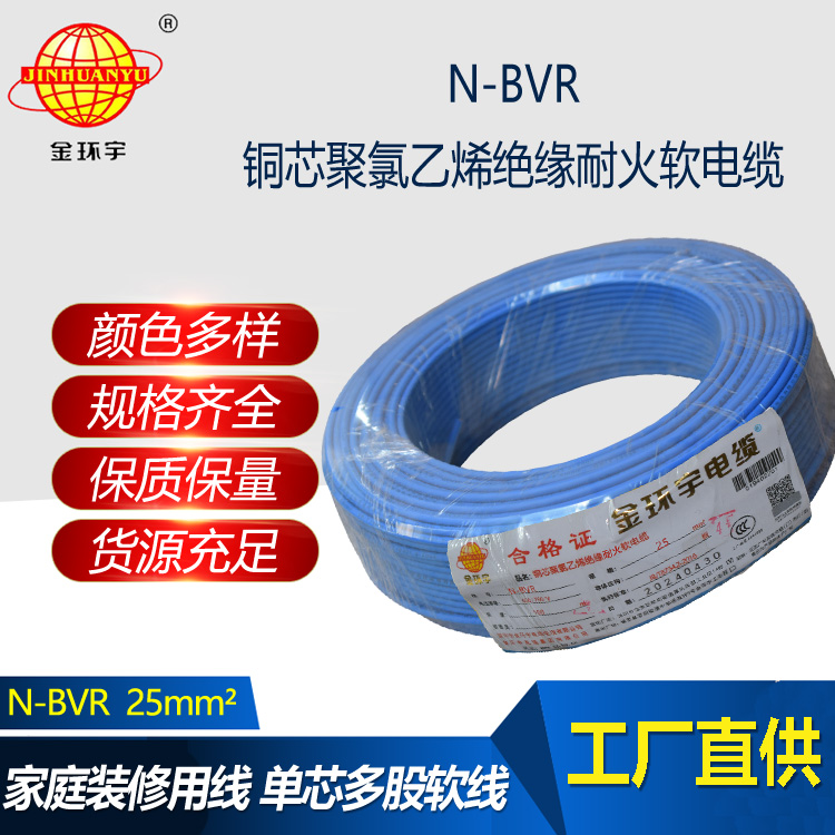 N-BVR耐火電線就是銅芯聚氯乙烯絕緣耐火軟電線,適用于交流額定電壓450/750V及以下的動力裝置的固定敷設。