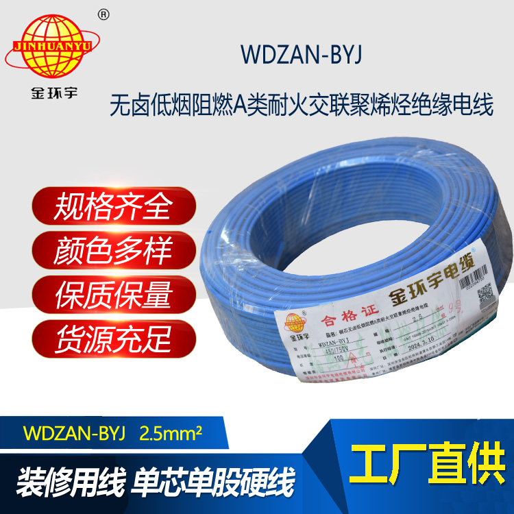 WDZAN-BYJ:即為銅芯無(wú)鹵低煙阻燃A類耐火交聯(lián)聚烯烴絕緣電線,是指電線的絕緣層材料鹵素物質(zhì),在燃燒的情況下,不釋放含鹵氣體,煙霧濃度低,參照標(biāo)準(zhǔn)為JB/T 10491-2004,型號(hào)有WDZAN-BYJ、WDZBN-BYJ、WDZCN-BYJ等,