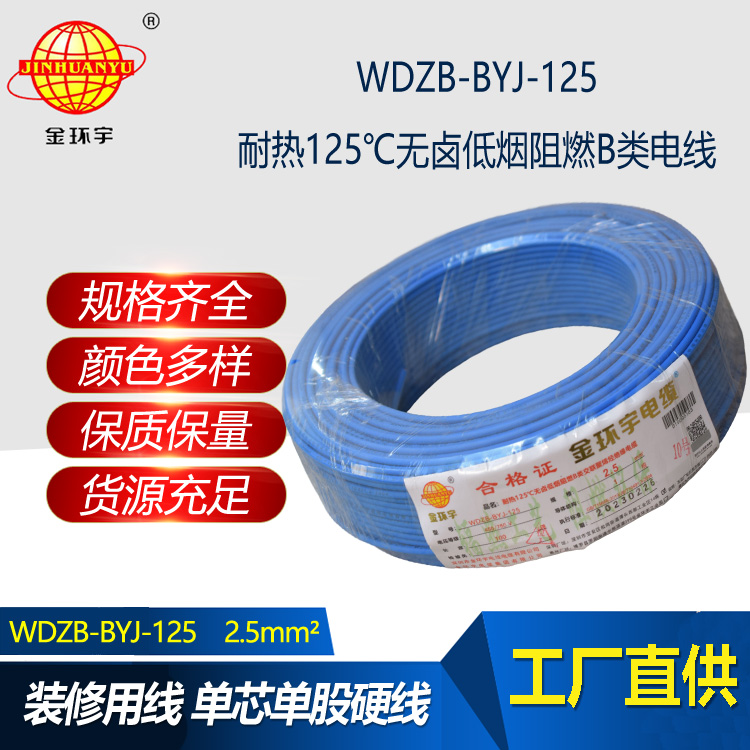 WDZ-BYJ-125銅芯耐熱125℃無(wú)鹵低煙阻燃輻照交聯(lián)聚稀烴絕緣電纜