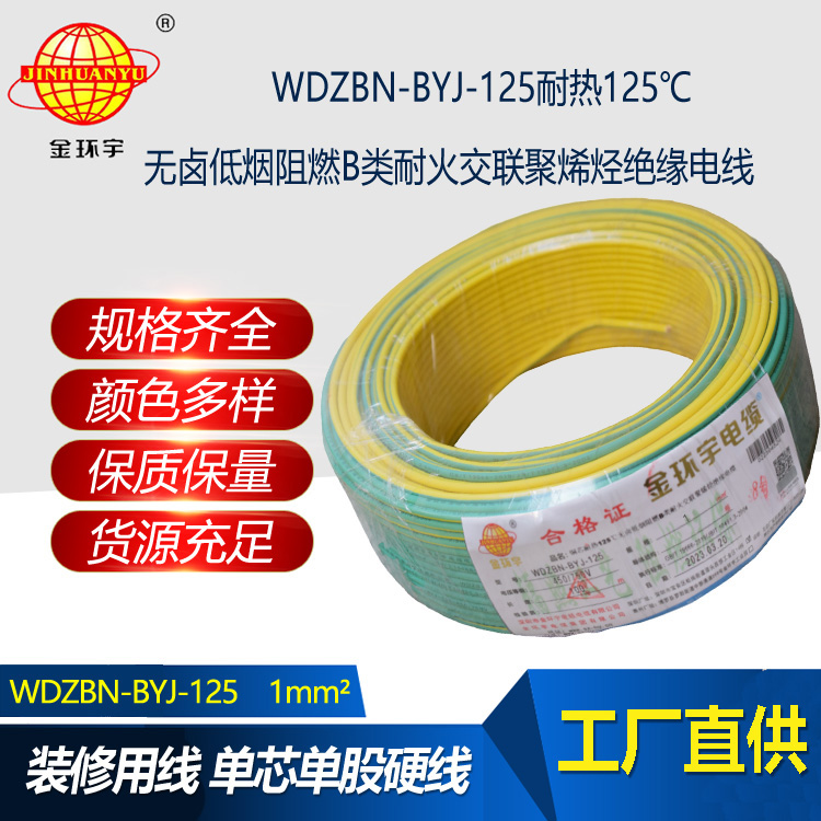 金環(huán)宇電線 銅芯硬線1平方WDZBN-BYJ-125阻燃b類無鹵低煙電線