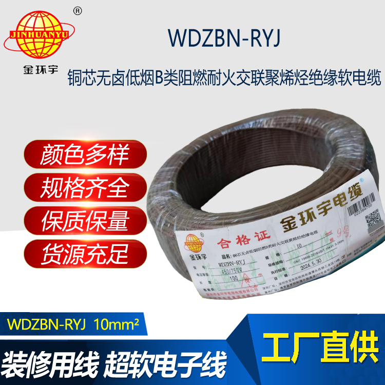WDZBN-RYJ電纜:全稱B級阻燃耐火低煙無鹵交聯(lián)聚烯烴絕緣布電線,執(zhí)行標(biāo)準(zhǔn)GB/T19666-2005。
