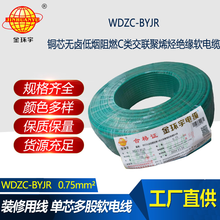 WDZC-BYJR指低煙無(wú)鹵阻燃聚烯烴護(hù)套,交聯(lián)聚乙烯絕緣軟電線。WDZC分別是無(wú)鹵、低煙、阻燃、聚烯烴,B指電線,YJ是交聯(lián)聚乙烯絕緣,R是軟。