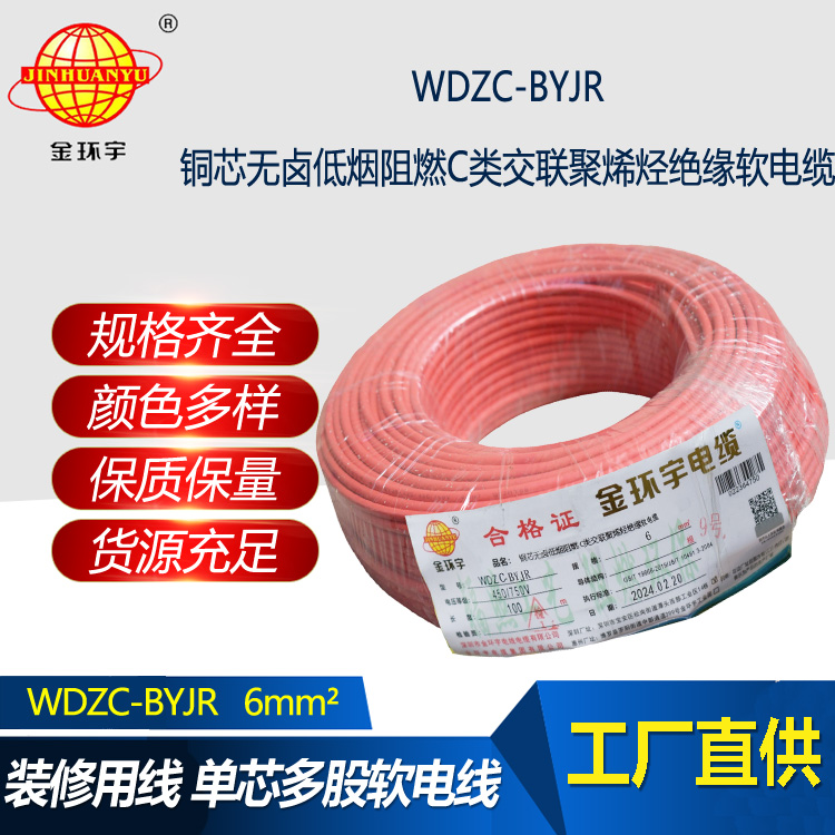 WDZC-BYJR指低煙無鹵阻燃聚烯烴護(hù)套,交聯(lián)聚乙烯絕緣軟電線。WDZC分別是無鹵、低煙、阻燃、聚烯烴,B指電線,YJ是交聯(lián)聚乙烯絕緣,R是軟。