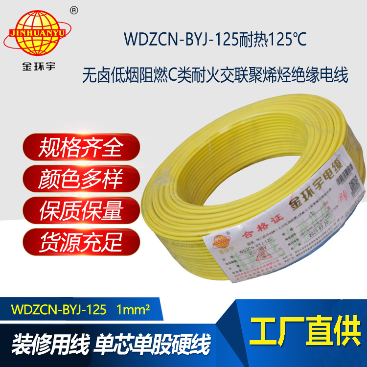 金環(huán)宇電線 WDZCN-BYJ-125電線1平方c級(jí)阻燃耐火低煙無鹵銅芯硬電線