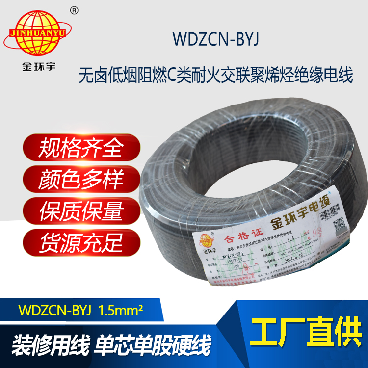 WDZCN-BYJ:即為銅芯無鹵低煙交聯(lián)聚氯乙烯絕緣阻燃c類耐火電線,是指電線的絕緣層材料鹵素物質,在燃燒的情況下,不釋放含鹵氣體,煙霧濃度低,參照標準為JB/T 10491-2004,型號有WDZAN-BYJ、WDZBN-BYJ、WDZCN-BYJ等,