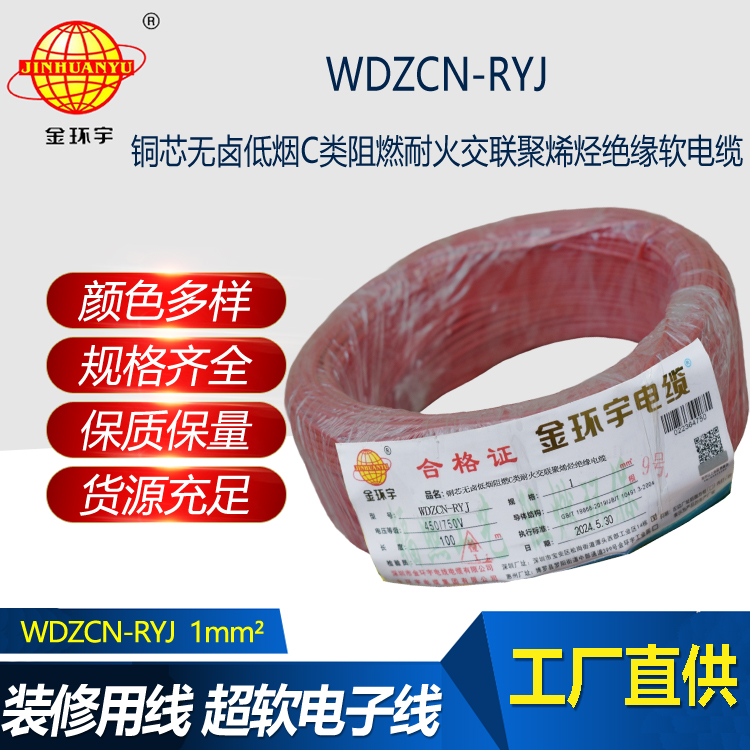 WDZCN-RYJ電纜:全稱C級阻燃耐火低煙無鹵交聯(lián)聚烯烴絕緣布電線,執(zhí)行標準GB/T19666-2005。