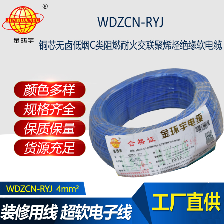 金環(huán)宇電線電纜 WDZCN-RYJ 4平方 深圳低煙無(wú)鹵阻燃c級(jí)耐火電線報(bào)價(jià)