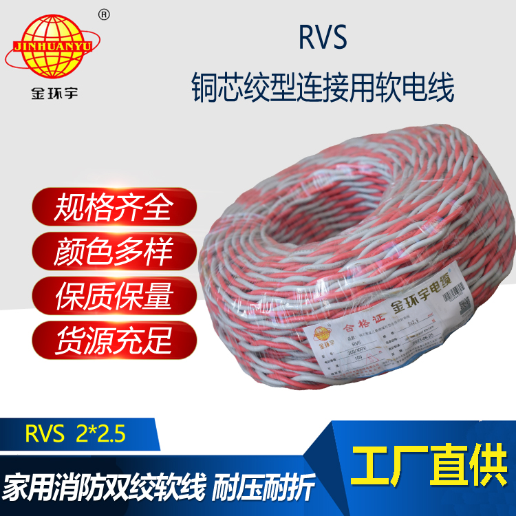 我們推薦金環(huán)宇的RVS電纜,也稱作“花線”,這是一種全銅芯聚氯乙烯絕緣的雙絞線,在消防系統(tǒng)中廣泛應(yīng)用。字母S代表雙絞線,字母R代表軟線,字母V代表聚氯乙烯(絕緣體)。