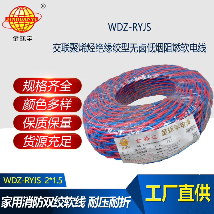 WDZ-RYJS :是銅芯低煙無(wú)鹵阻燃交聯(lián)聚烯烴絕緣絞型連接軟線。是消防用阻燃聚烯烴絕緣連接軟線是參照GB/T5023-2008等標(biāo)準(zhǔn)制訂的,其阻燃特性符合GB/Tl9666類的要求。