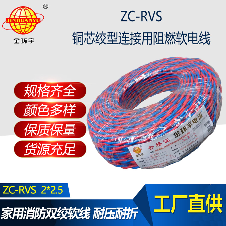 金環(huán)宇電線電纜 花線 阻燃ZC-RVS 2X2.5平方雙絞線消防信號(hào)線