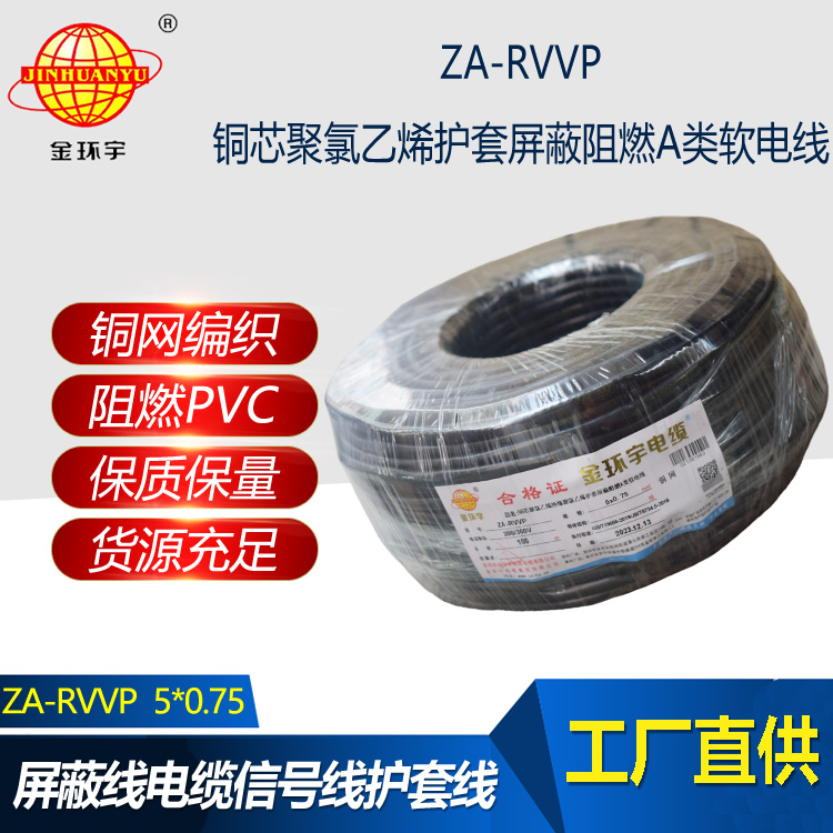 金環(huán)宇電纜 ZA-RVVP 5X0.75平方 深圳a類阻燃屏蔽電纜價格
