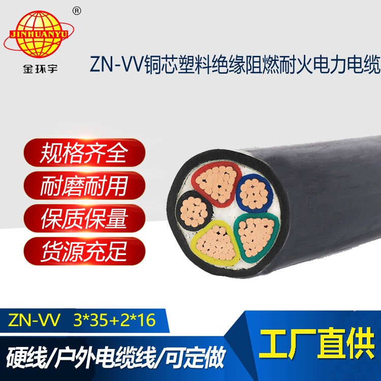 金環(huán)宇電纜 vv電力電纜ZN-VV 3X35+2X16平方 阻燃耐火電纜