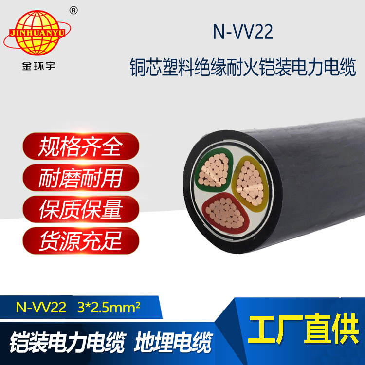 VV22:敷設(shè)在室內(nèi),隧道及直埋土壤中,電纜能承受壓力和其他外力作用。