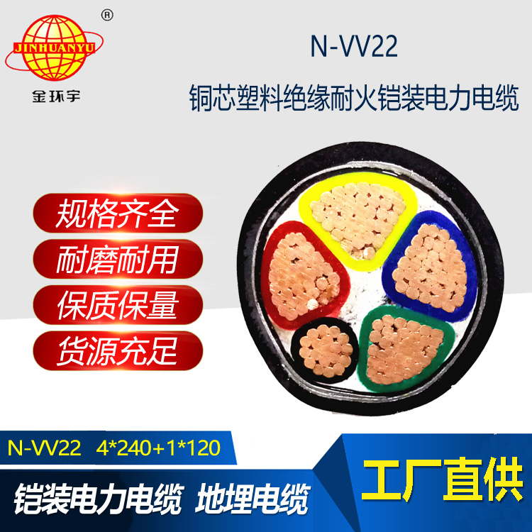 金環(huán)宇向您推薦N-VV22耐火鎧裝電線電纜,它是您理想的選擇,可應用于交流50HZ額定電壓0.6/1kV輸配電線路。