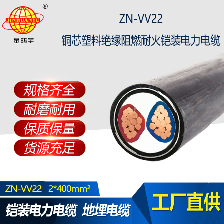 金環(huán)宇電線電纜 ZN-VV22-2X400平方 vv22電纜 阻燃耐火電力電纜鎧裝