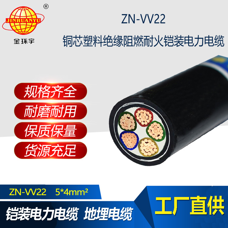 金環(huán)宇電線電纜 阻燃耐火鎧裝電纜ZN-VV22-5X4平方 銅芯電力電纜