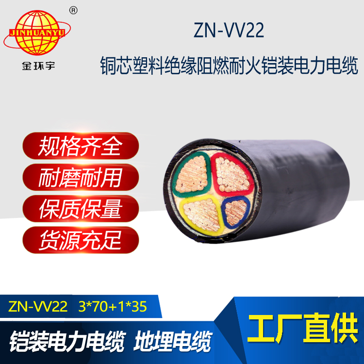 金環(huán)宇電線電纜 ZN-VV22-3X70+1X35平方 阻燃耐火vv22電纜 鎧裝電纜