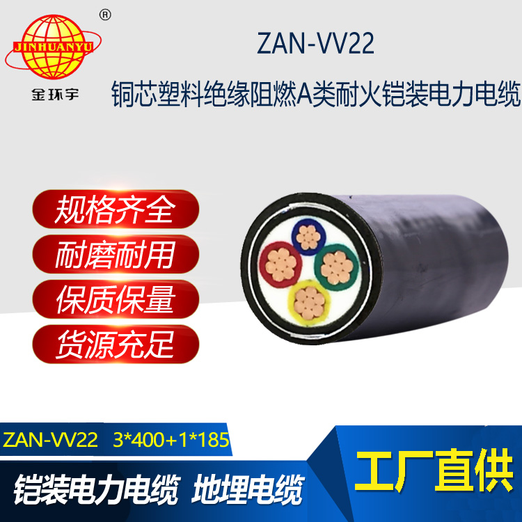 金環(huán)宇電線電纜 阻燃低壓電纜ZAN-VV22-3x400+1x185平方 耐火電力電纜