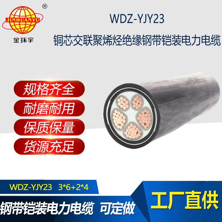 金環(huán)宇電線電纜 低煙無(wú)鹵阻燃電纜WDZ-YJY23-3X6+2X4平方 鎧裝電線電纜