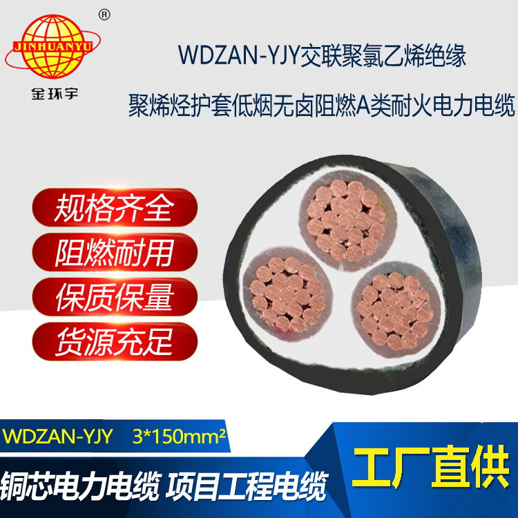 金環(huán)宇電纜 WDZAN-YJY 3X150平方 低煙無鹵阻燃耐火電纜 yjv電力電纜