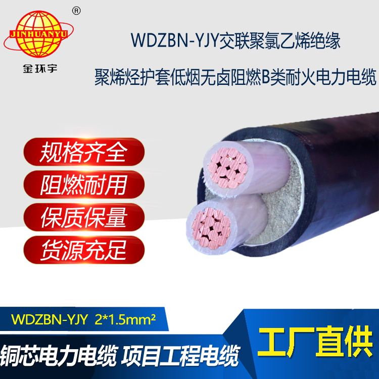 金環(huán)宇電線電纜 低煙無鹵阻燃聚烯烴耐火電纜 WDZBN-YJY 2X1.5 電力電纜
