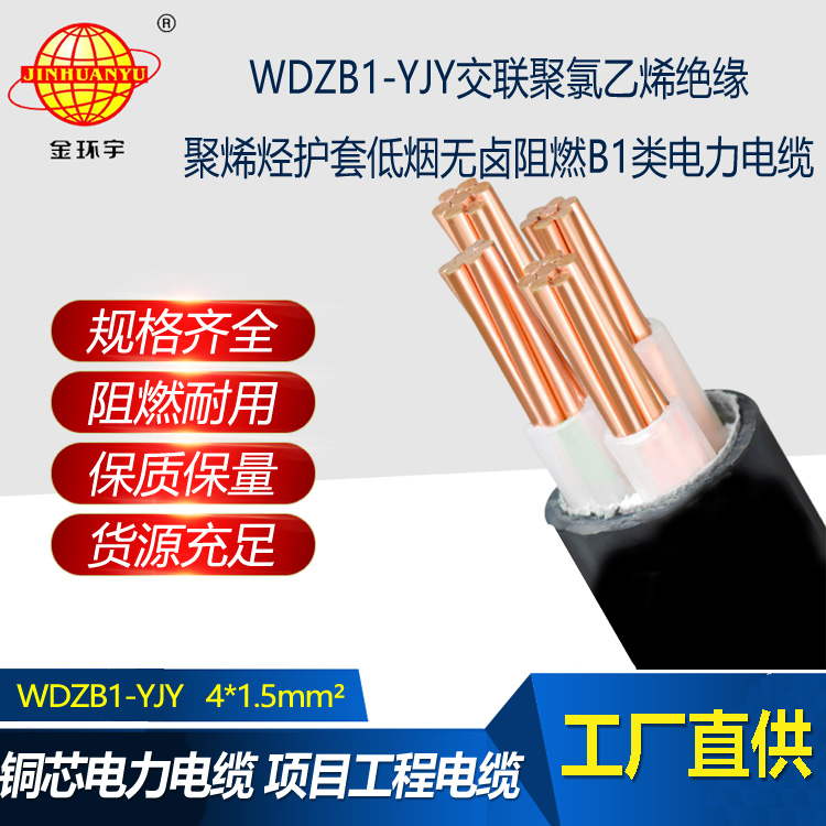 金環(huán)宇電線電纜 WDZB1-YJY4x1.5平方 4芯低煙無鹵阻燃B1類電力電纜