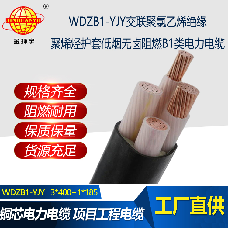 金環(huán)宇電線電纜 WDZB1-YJY3x400+1x185 低煙無鹵絕緣電纜 阻燃b1類電纜