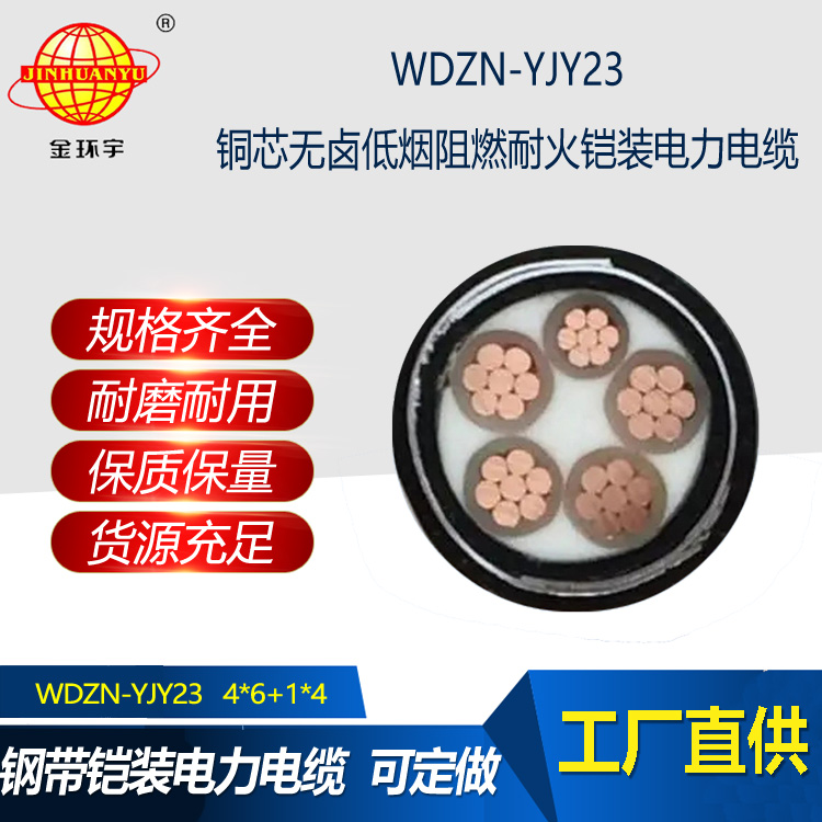 金環(huán)宇 低煙無鹵耐火電力電纜WDZN-YJY23-4x6+1x4平方 鎧裝電纜