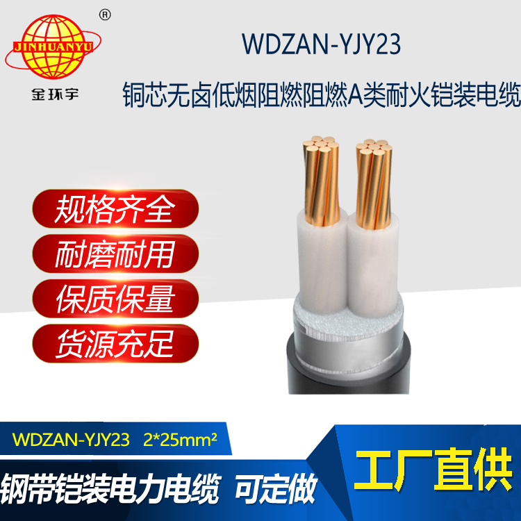 金環(huán)宇 WDZAN-YJY23-2X25平方 鎧裝交聯(lián)電纜 阻燃耐火無(wú)鹵低煙電纜