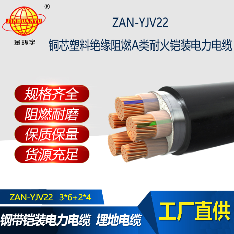 ZAN-YJV22電纜:銅芯交聯(lián)聚乙烯絕緣聚氯乙烯護套鋼帶鎧裝A類阻燃耐火型電力電纜,