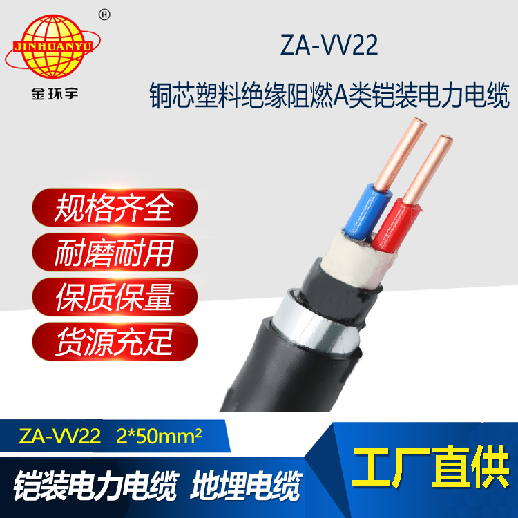 金環(huán)宇電線電纜 阻燃a類鎧裝電纜 深圳vv22電纜ZA-VV22-2X50平方